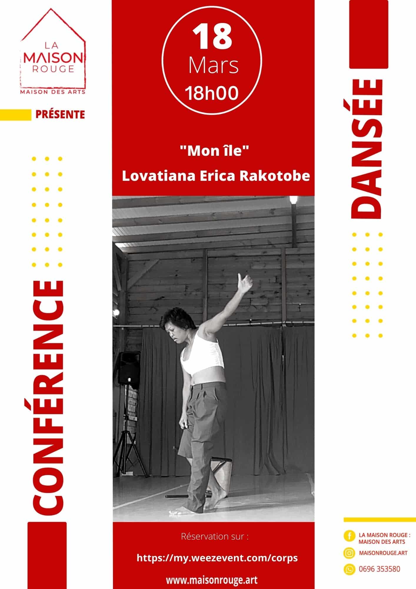La Maison Rouge : Maison des Arts vous invite à la conférence dansée de Lovatiana Erica Rakotobe le 18 mars à 18h00.
